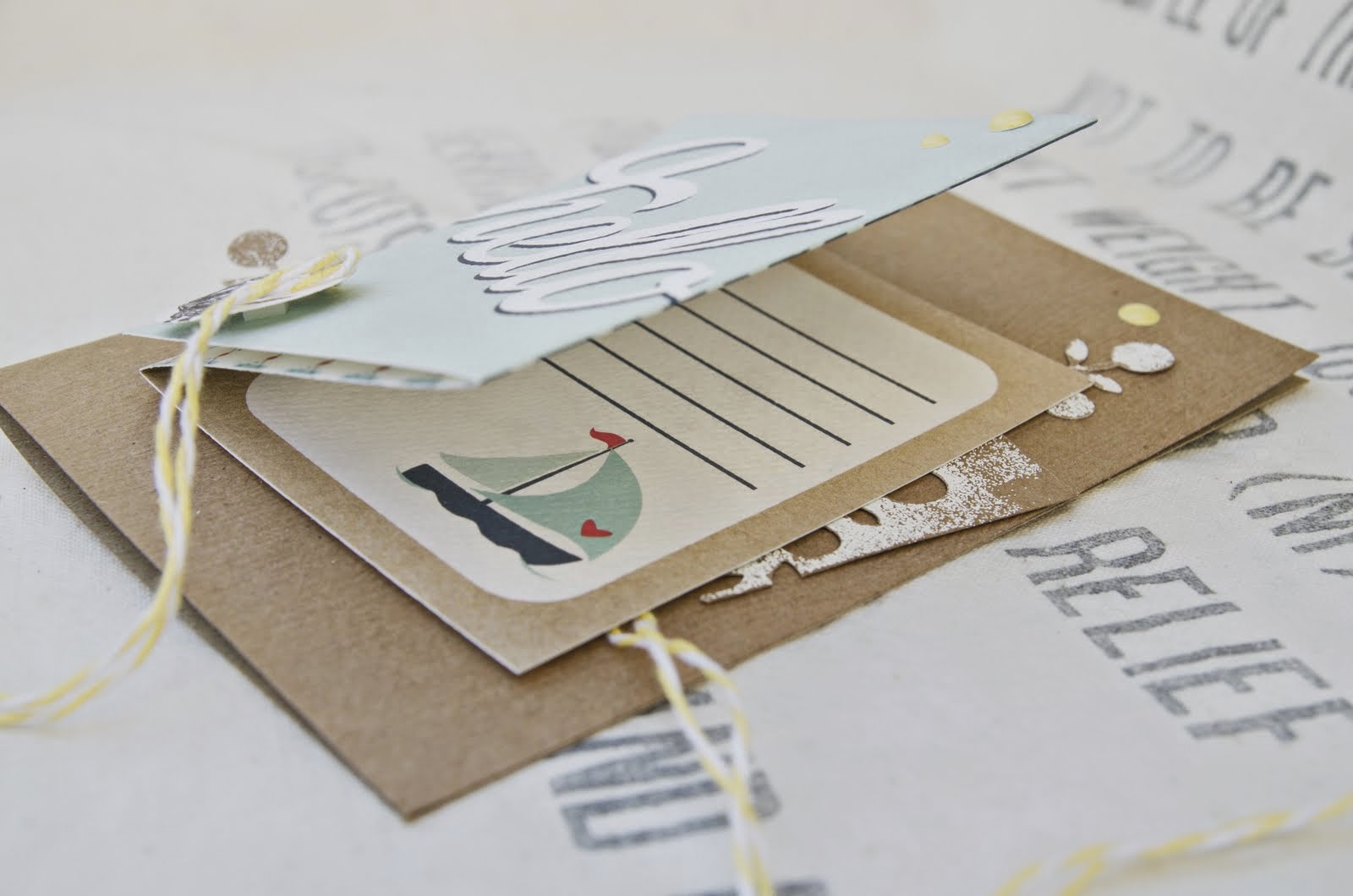Es wird maritim - das Wasser lockt bei diesen Temperaturen doch sehr! Im Juli-Kit war auch ein Bogen Journaling Cards mit Segelmotiven in den klassischen maritimen Farben Hell-/Dunkelblau, Natur und kräftigem Rot. Die Kombi aus Blau-Natur und Gelb funktioniert aber auch!